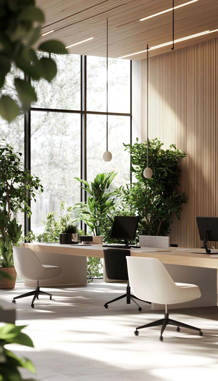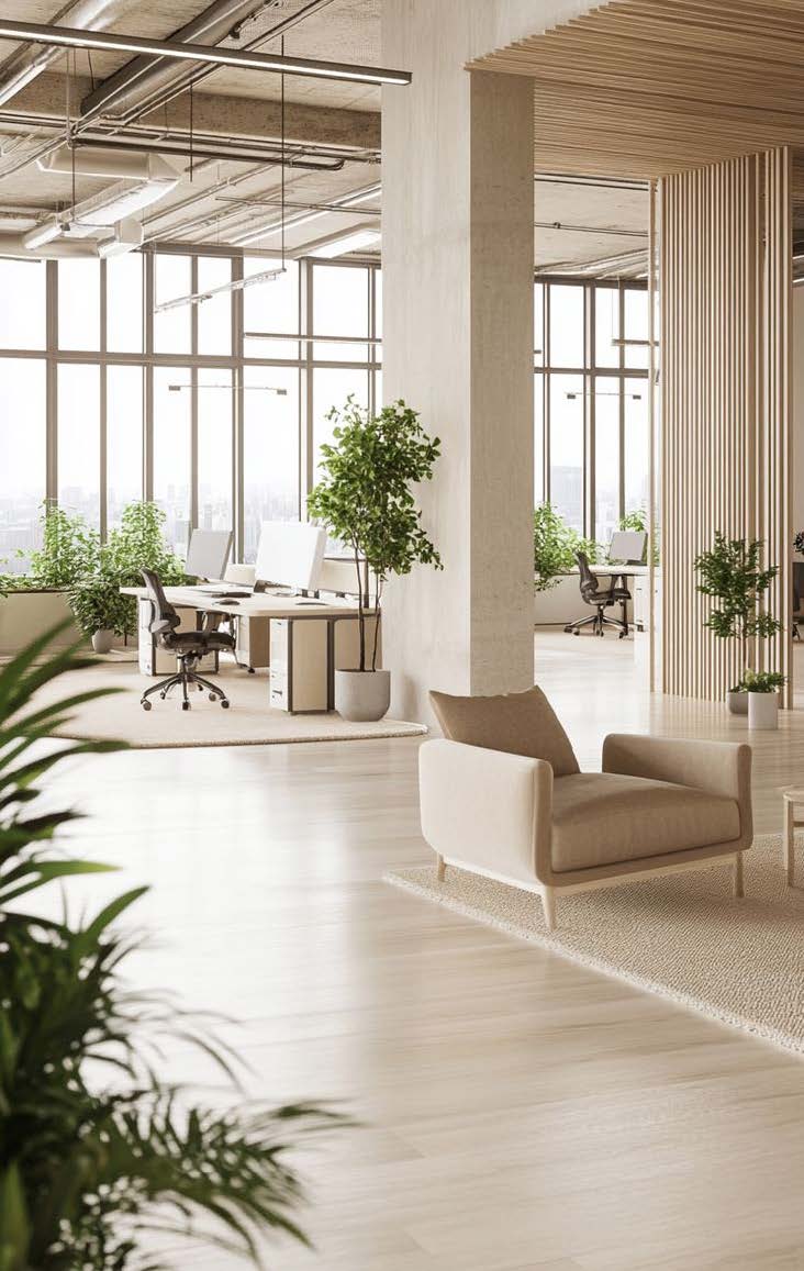 Discover a workspace where nature flows seamlessly indoors, fostering calm, creativity, and well-being. The Nature option blends organic materials, soft tones, and biophilic design, creating